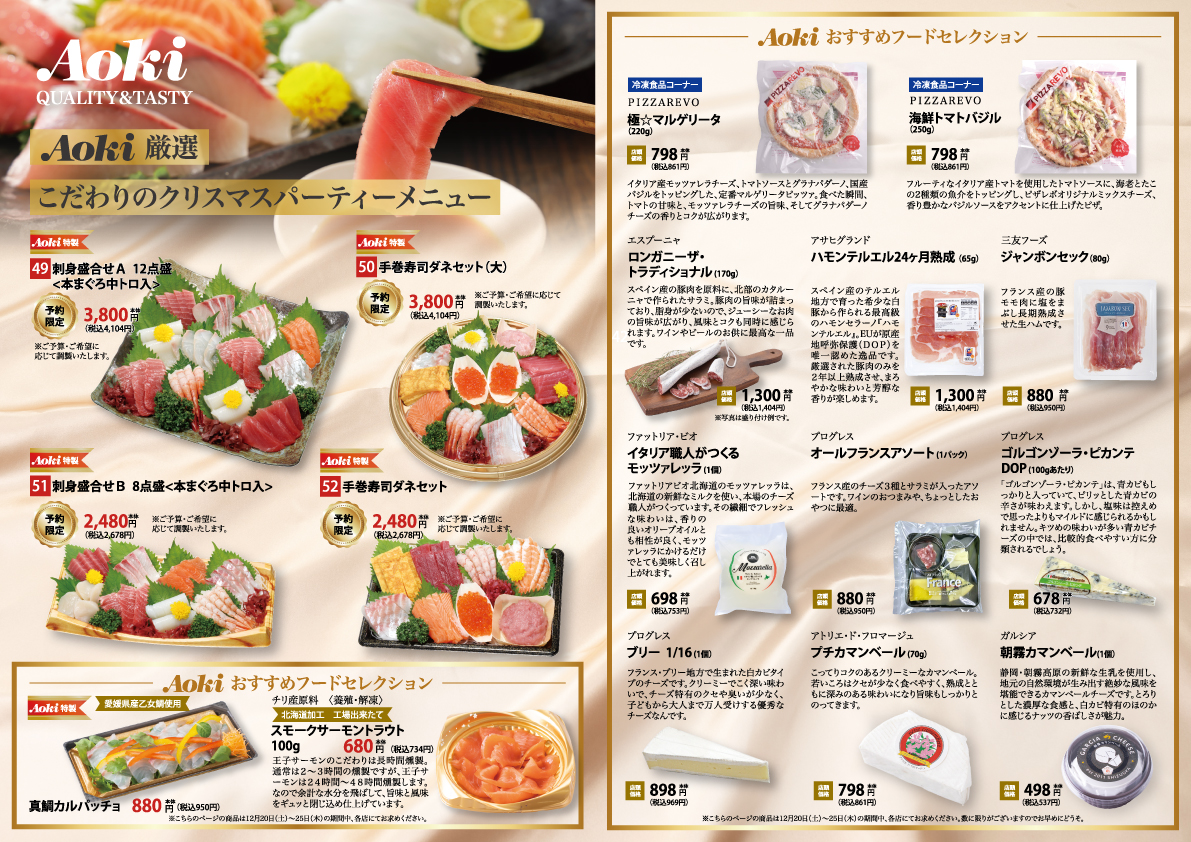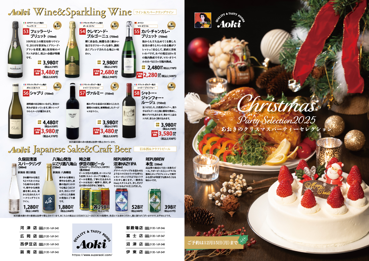 2025年クリスマスメニューご予約受付中! 🎅 クリスマスケーキのご予約受付中! ご注文は、各店のサービスカウンターにて承ります。 受付期間:12月15日(月)までとなっておりますので、お早めにどうぞ! 🎄 クリスマスパンフレットを開く(PDF) 一覧に戻る
