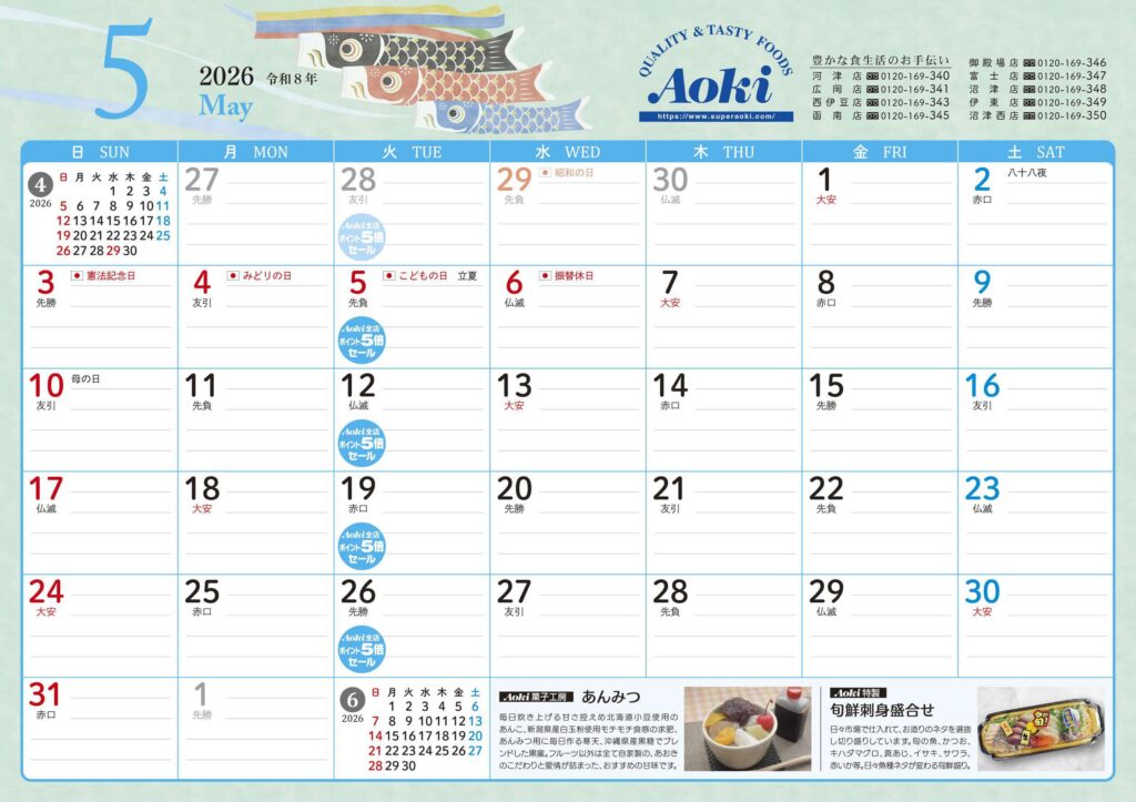 2026年5月あおきカレンダー